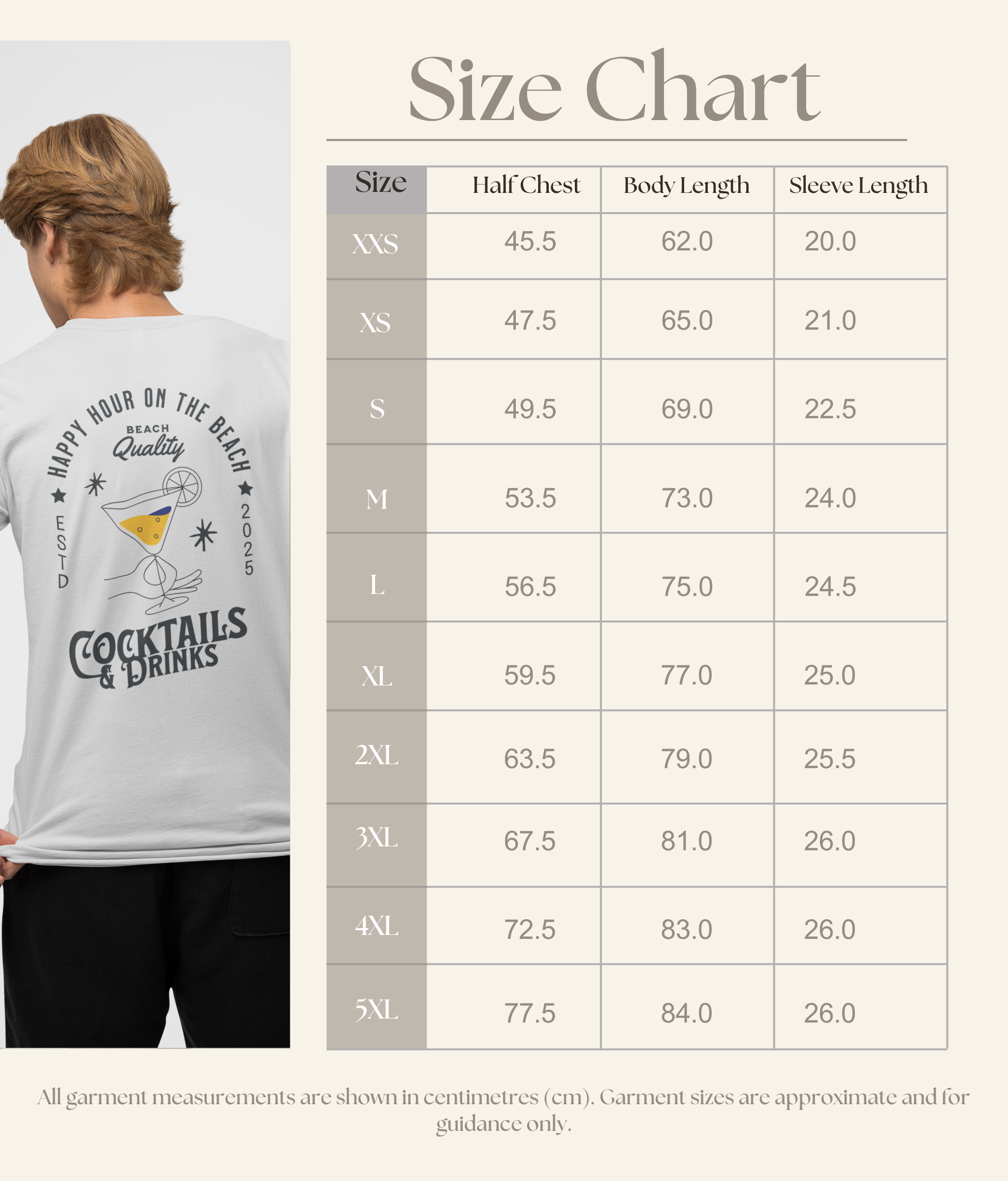 “Happy Hour on the beach-Cocktails & Drinks” Organic cotton T-Shirt l White l Medium Fit, Mid Weight