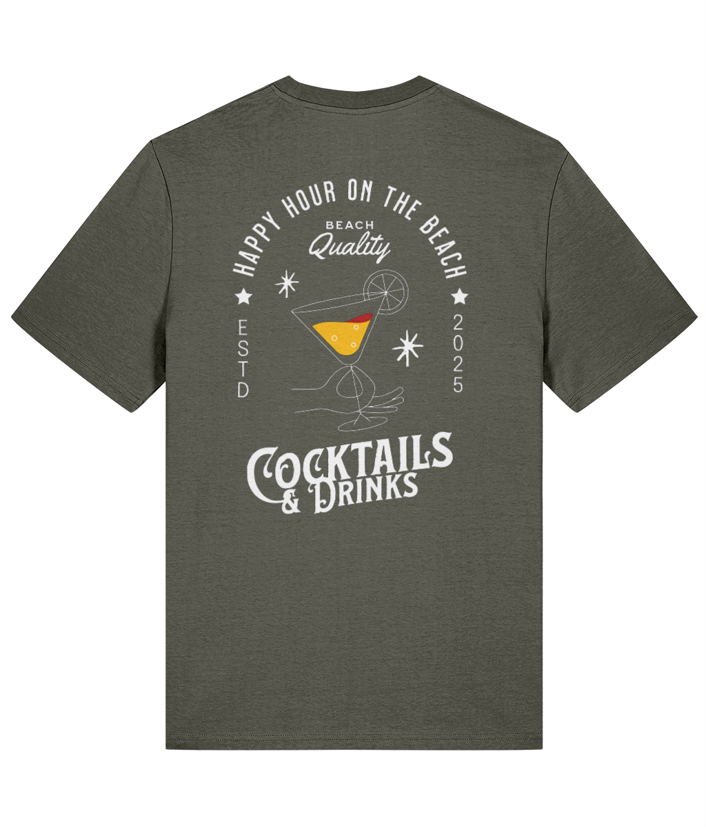 “Happy Hour on the beach-Cocktails & Drinks” Organic cotton T-Shirt l Khaki l Medium Fit, Mid Weight