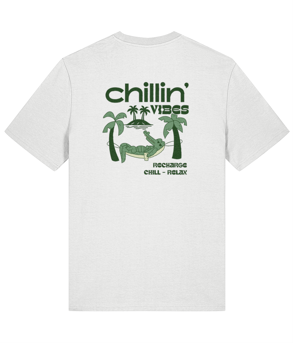 “Chillin'vibes” Organic cotton T-Shirt l White l Medium Fit l Mid Weight