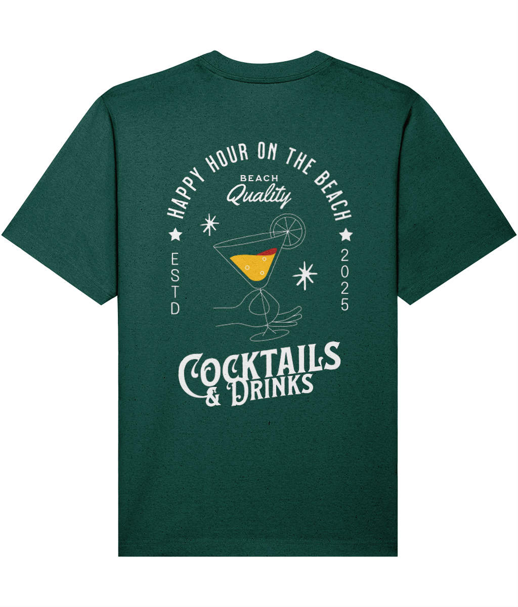 “Happy Hour on the beach-Cocktails & Drinks” Organic cotton Glazed Green T-Shirt l Relaxed Fit, Heavy Weight, 240 GSM