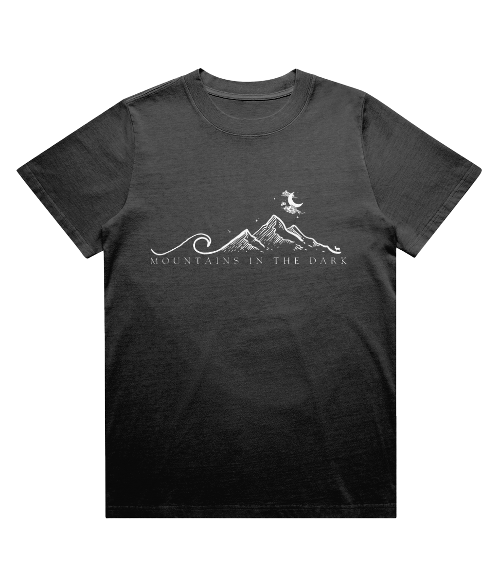 "Mountains in the Dark" Oversized Fit T-Shirt, Cotton, Heavyweight,Black.