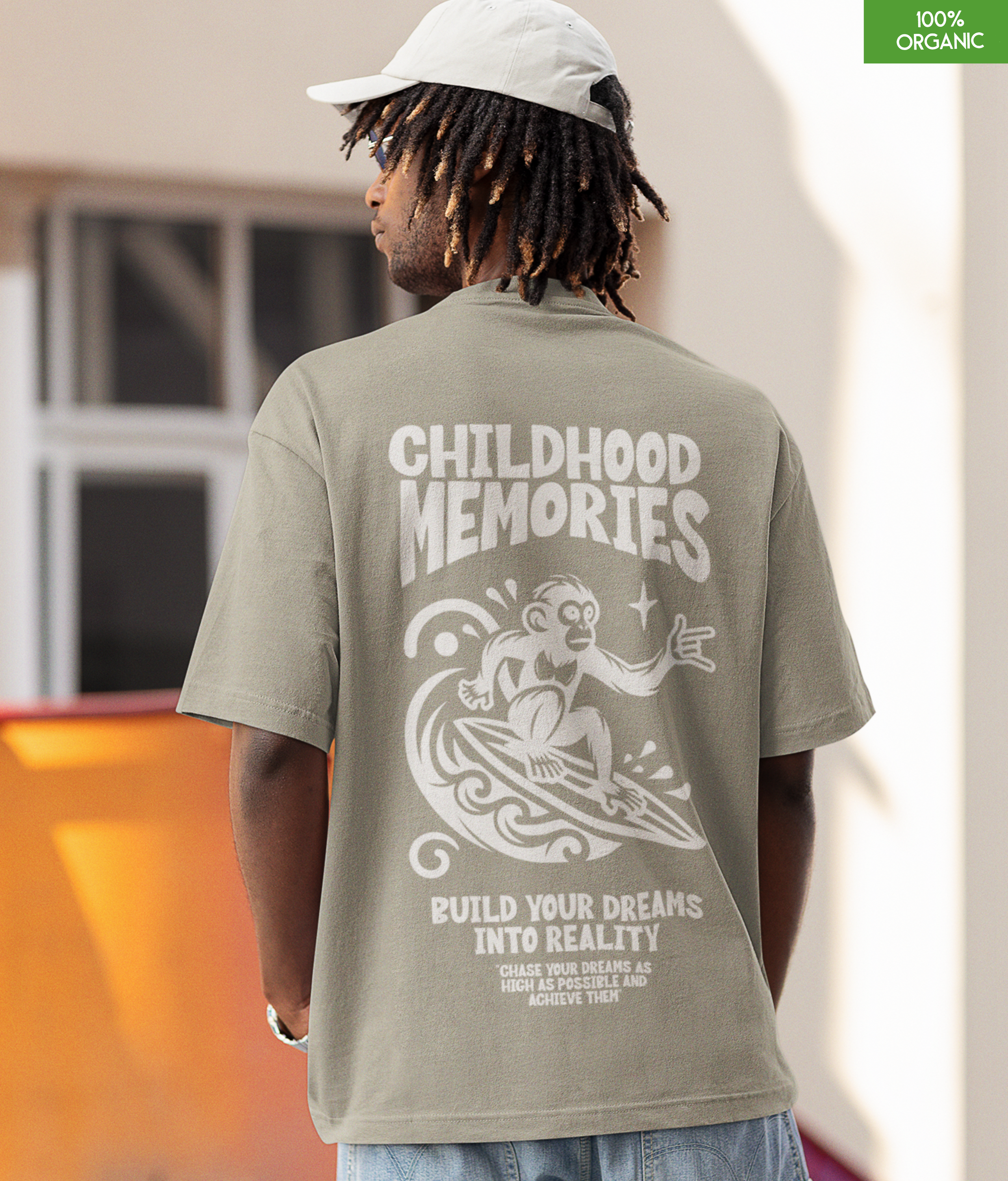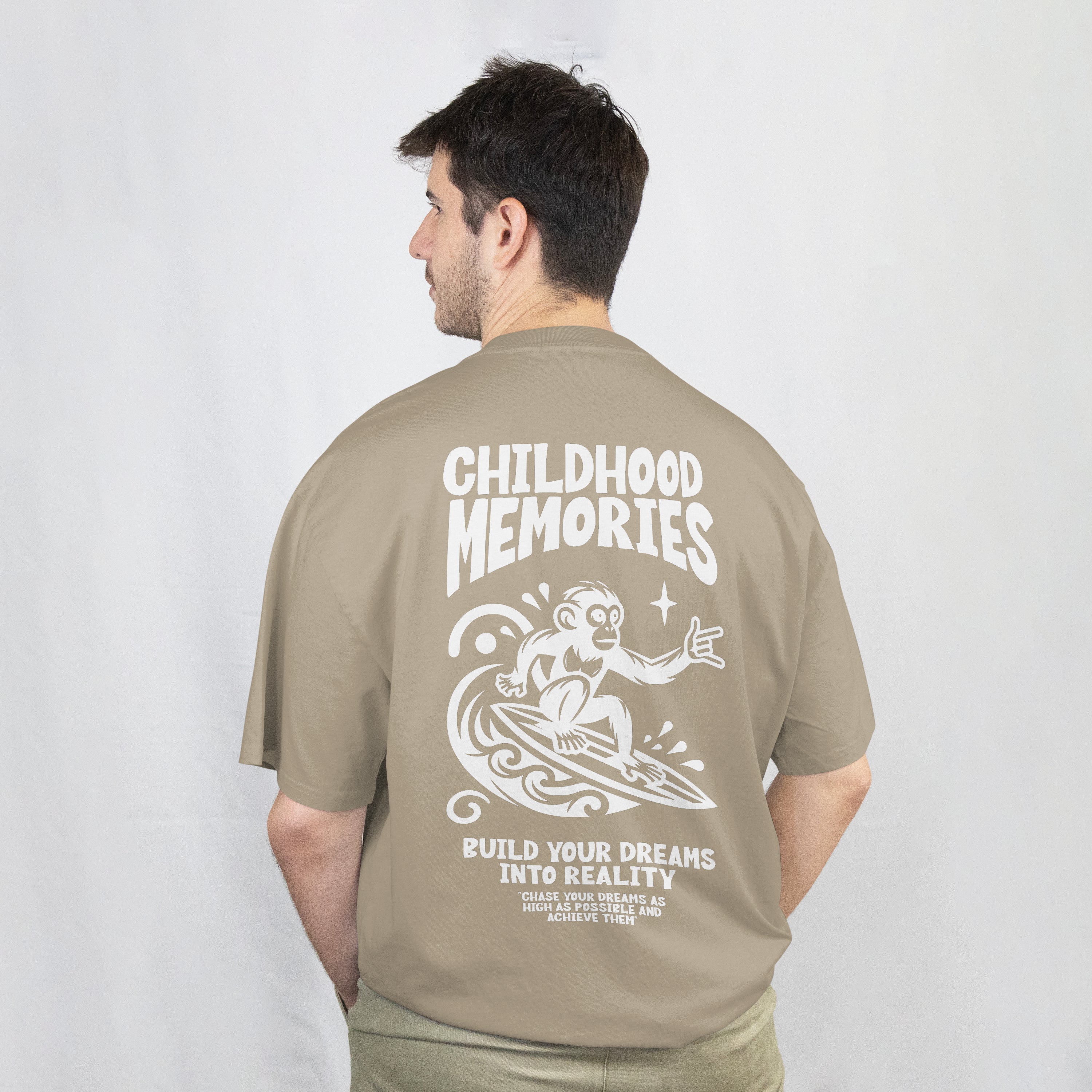 Relive your carefree days with the “Childhood Memories” oversized t-shirt — a playful design featuring a surfing monkey and motivational...