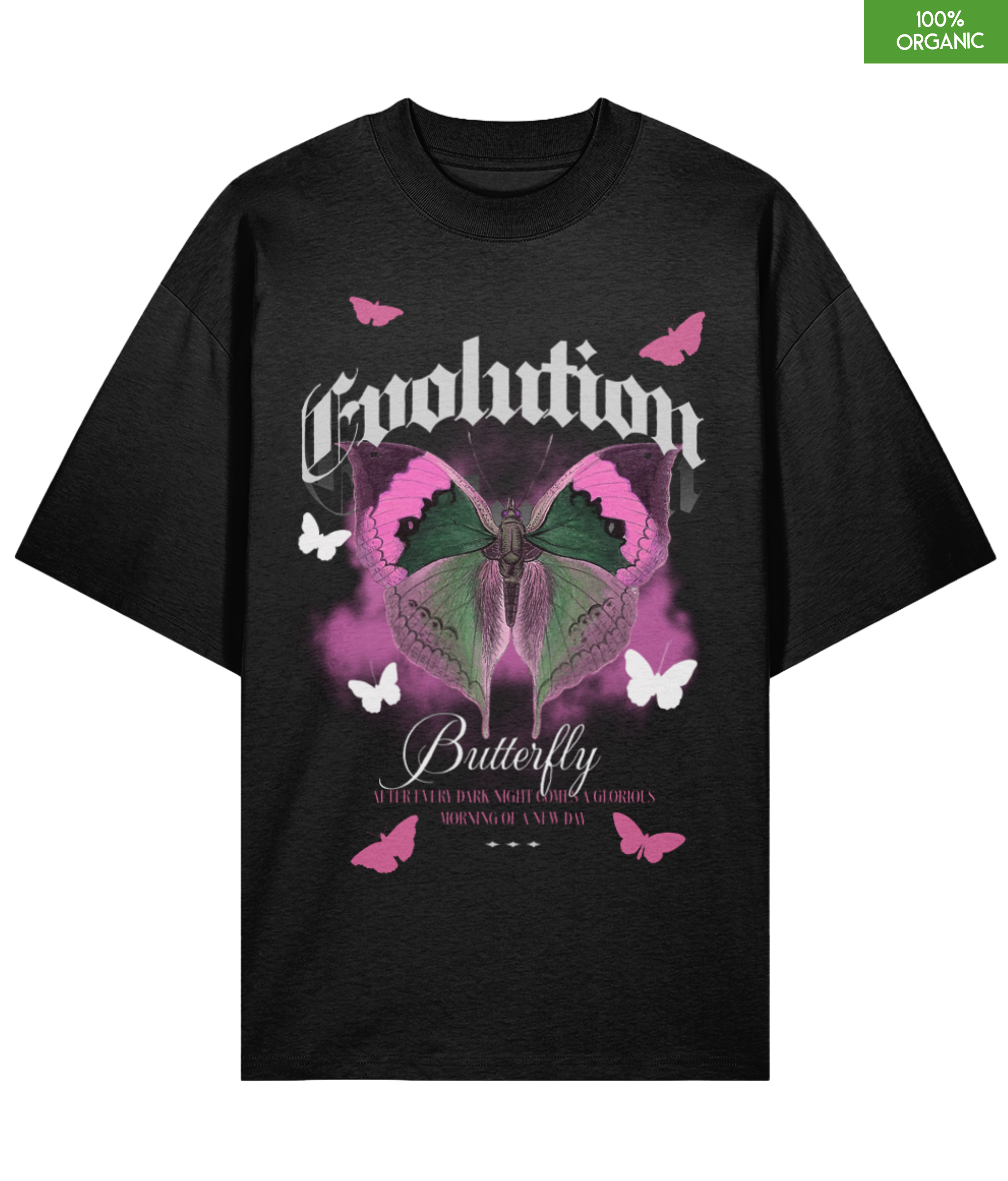 Evolution Butterfly Oversized T-Shirt – Gothic Graphic Tee – Transformation & Renewal – 100% Organic Cotton
