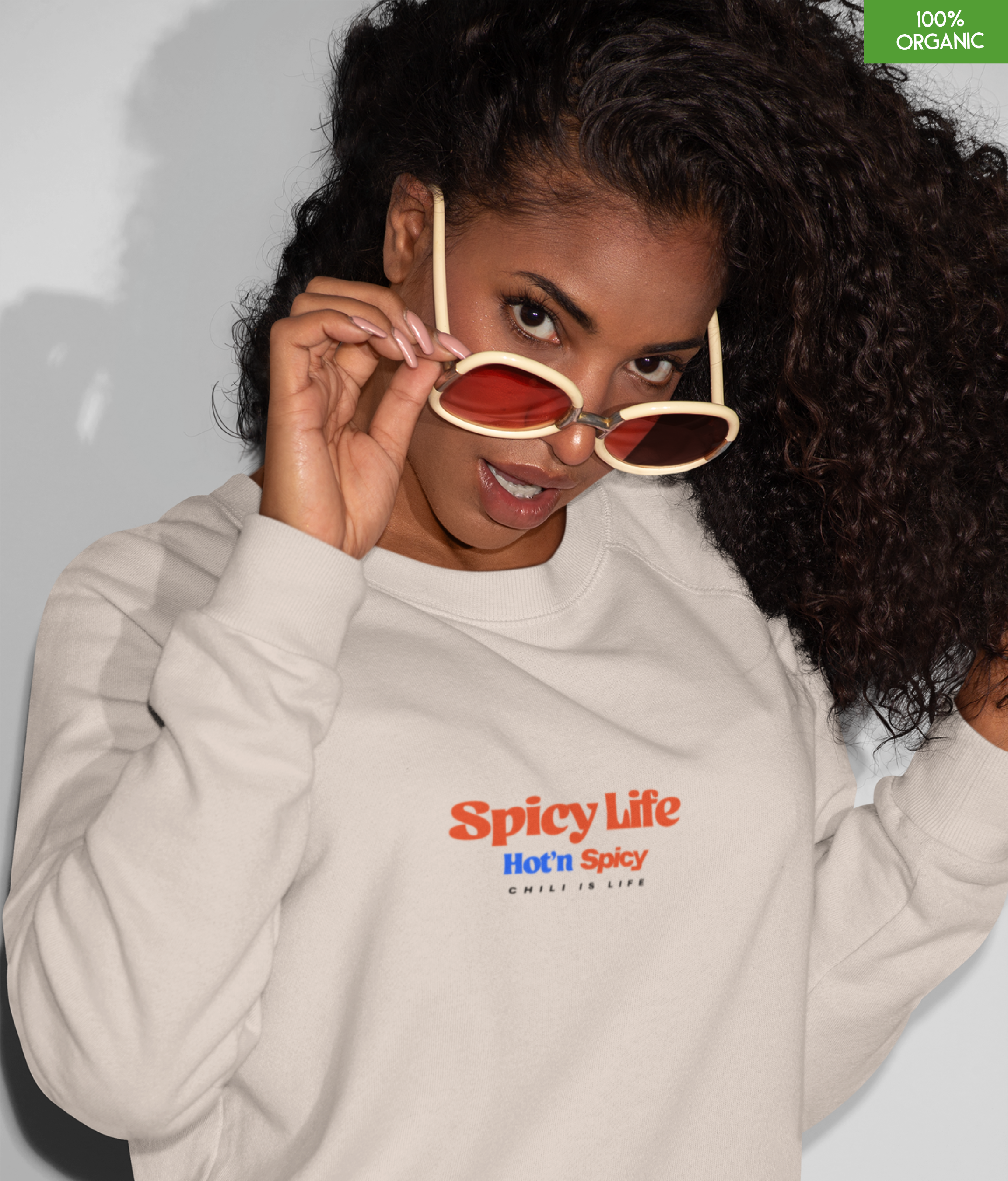 "Spicy Life Hot and Spicy" The women's crew neck sweatshirt | Eco-Heather | Medium fit | 300gsm