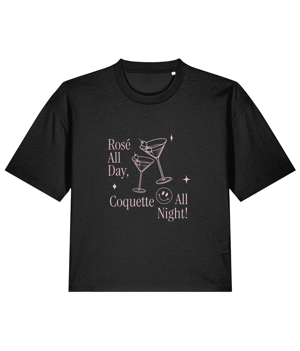 "Rose all day, Coquette all night" Cropped T-Shirt | Relaxed fit | Organic cotton and premium construction.
